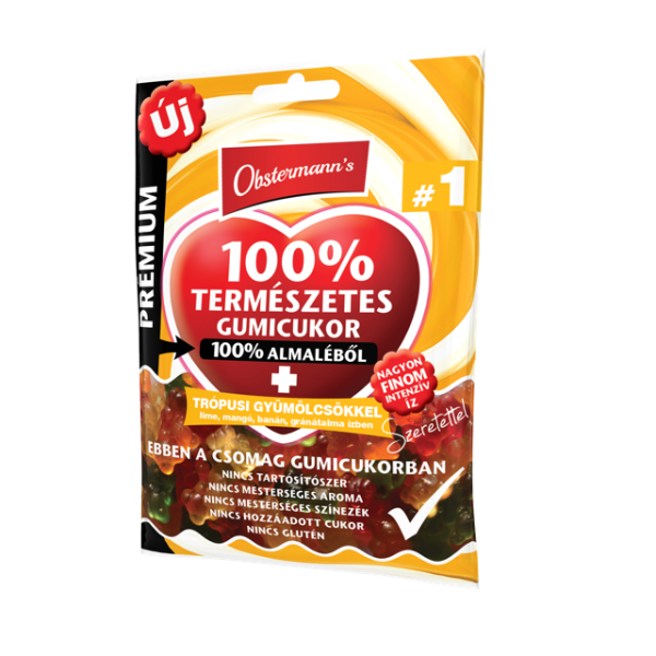 Obstermann's 100% természetes gyümölcsös gumicukor "Trópusi gyümölcsökkel" 80g