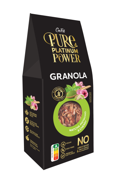Pure Platinum Power Gluténmentes Matcha-Pisztácia-Cseresznyés Granola hozzáadott cukor és édesítőszer mentes 225g