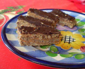 A sütőformát kikenjük, a tésztát három fele osztjuk, és nyújtjuk a tepsi méretének megfelelően. Beletesszük óvatosan az első lapot a tepsibe, megkenjük lekvárral, majd rászórjuk a cukorral elkevert diót. Rátesszük a következő lapot, megkenjük, mint az előzőt, megszórjuk dióval. A harmadik lappal befedjük, tetejét megszurkáljuk villával. 180 fokos sütőben, tűpróbáig sütjük.