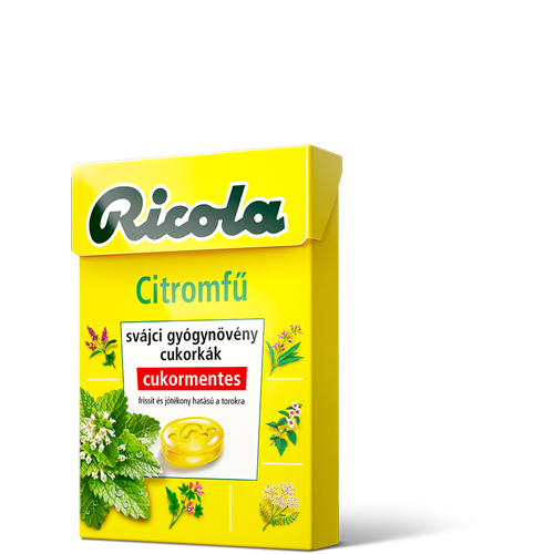 izomalt, étkezési sav (citromsav), citromfű és Ricola gyógynövény-keverék kivonat (0,3%) (a következő gyógynövényekből: lándzsás útifű, fehér mályva, borsmenta, kerti kakukkfű, orvosi zsálya, közönséges palástfű, cickafark, hasznos földitömjén, erdei mályva, bodzavirág, tavaszi kankalin, orvosi veronika, orvosi pemetefű), természetes citrus ízesítő, répakivonat, édesítőszerek (szteviol-glikozidok, taumatin), borsmentaolaj, mentalaj, mentol.