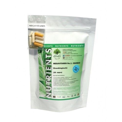 Öszetevők 1 napi csomagban: 5000 NE A-Vitamin, 400 NE D-Vitamin, 50 mg B-Vitamin komplex, 500 mg C-Vitamin, 400 NE E-Vitamin, 500 mg Tengeri hínár - Kelp, 1 kapszula Gyógynövény Energia (gyógynövény komplex), Aminosav Komplex és Vitaminerals (multi vitamin és - ásványi anyag komplex).
